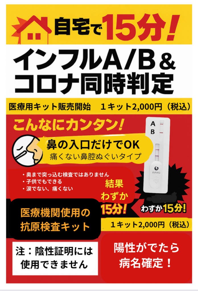 🔬 1キットで3つ同時判定(インフルA・B・コロナ)